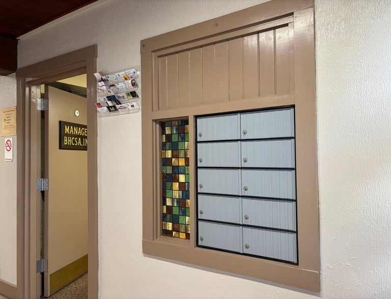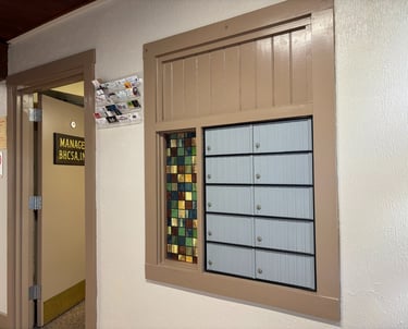 For your convenience, there is a mailbox drop box located at the barn door entrance below the window on the right side of the door. Just pull the metal handle and drop off your assessments, etc. Checked daily.